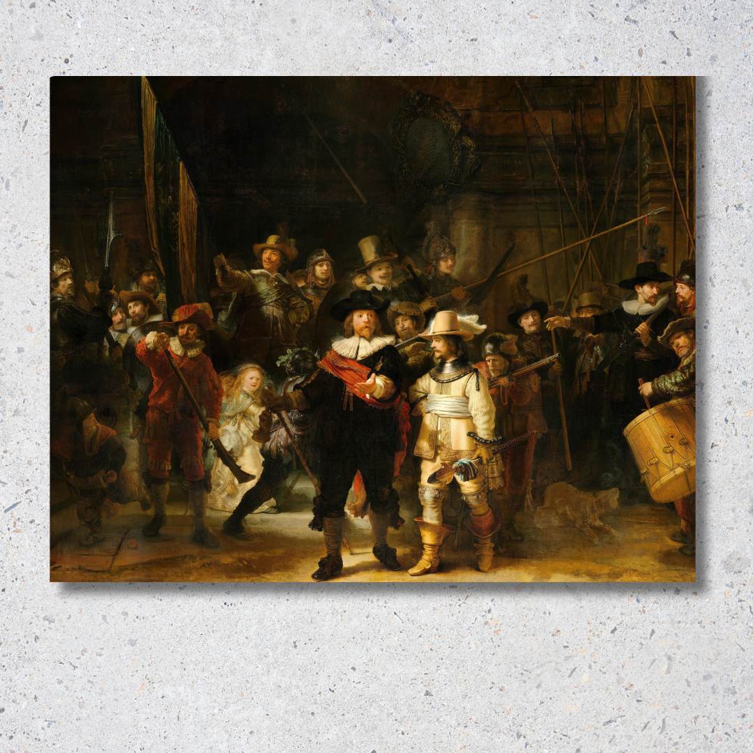 Najslávnejšie dielo holandského baroka fascinuje hrou svetla, tieňa a zachytením postáv v pohybe. Tento monumentálny portrét amsterdamskej milície vnáša do interiéru pocit dynamiky a historickej hĺbky. Vďaka špičkovej tlači na talianske plátno vynikne každý detail Rembrandtovej unikátnej techniky šerosvitu. Ideálna voľba pre milovníkov klasiky, ktorí hľadajú dominantný a charizmatický prvok do svojej obývačky.